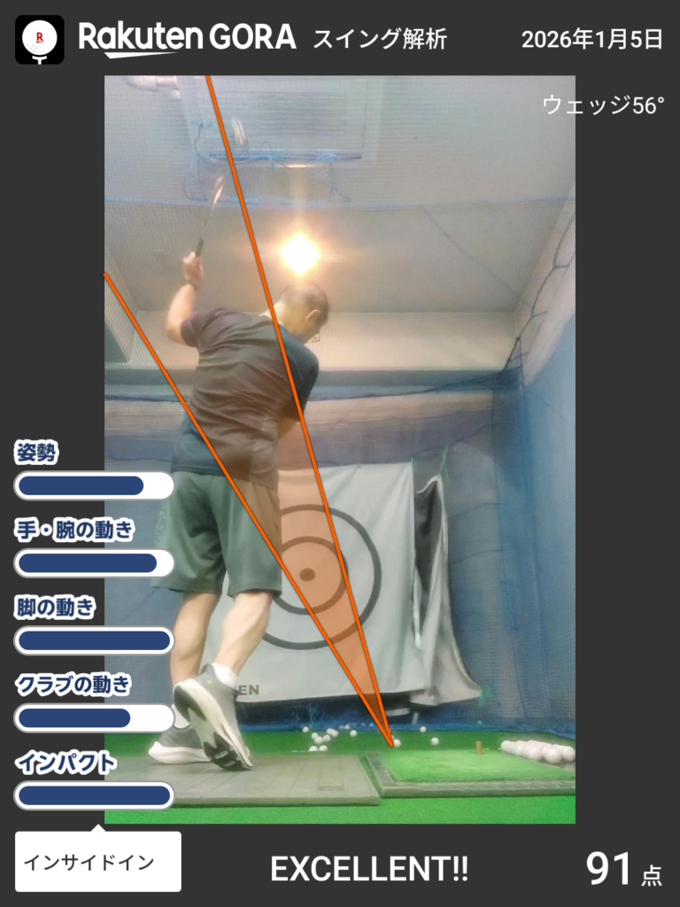 2026年の打ち初めはスポーツジムにある鳥かごでした。とはいえ右肩の痛みが残っているので軽いアプローチとウェッジで左手だけのショットでした。