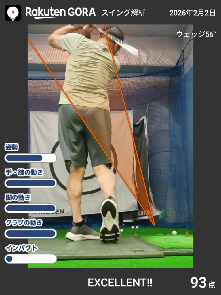 ゆったり振りましたが体はしっかりと回すよう意識しました。飛距離アップが課題なのでヘッドスピードを上げなければならないのですが、しばらくは7割以下の力で振っていきたいと思います。それでもミート率が上がればそれほど飛距離が落ちる事は無いと思います。早く万全の体調の戻して、パワフルスイングで体つくりをしたいと思います。